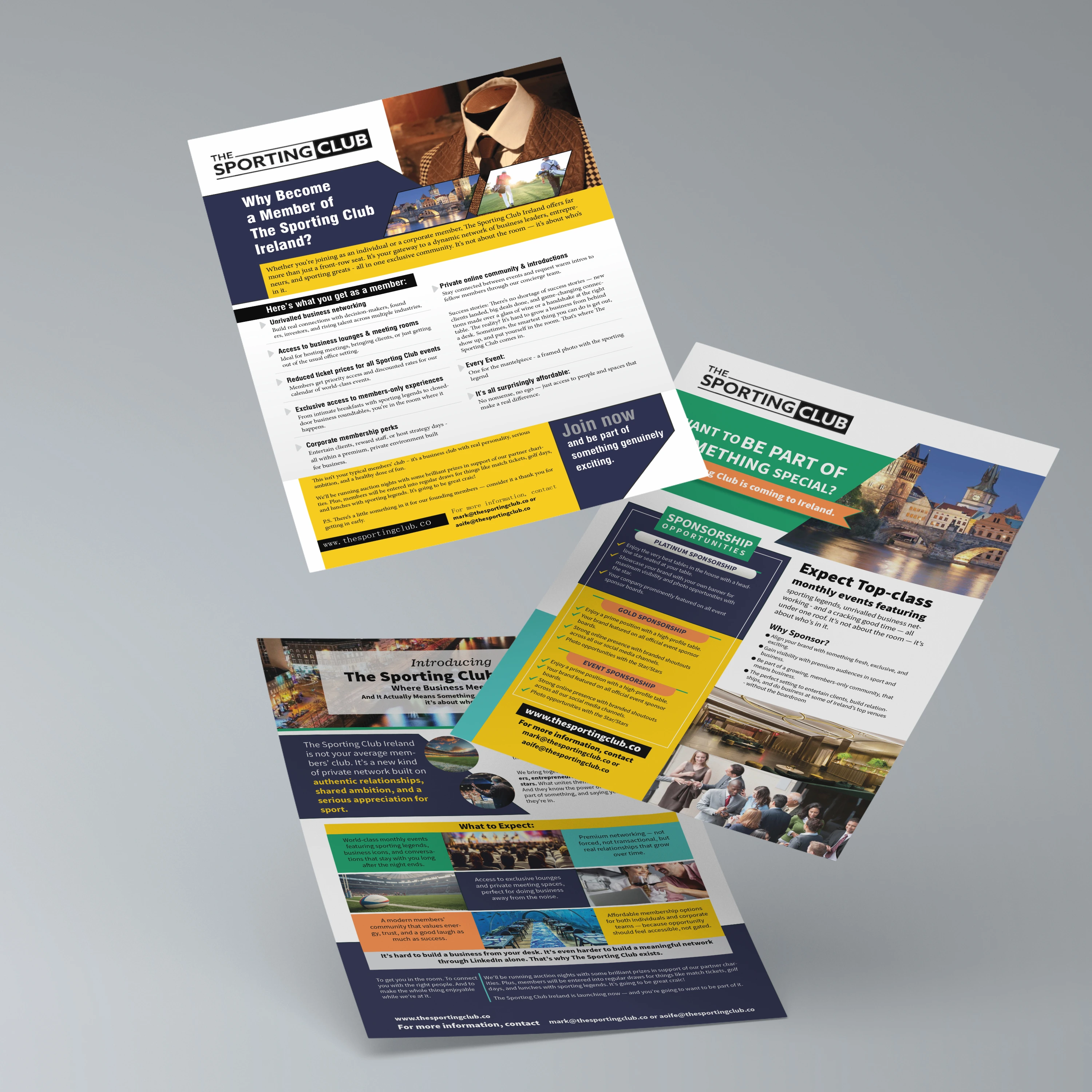 Our strategy for The Sporting Club Ireland’s A4 leaflet design was based on three principles: