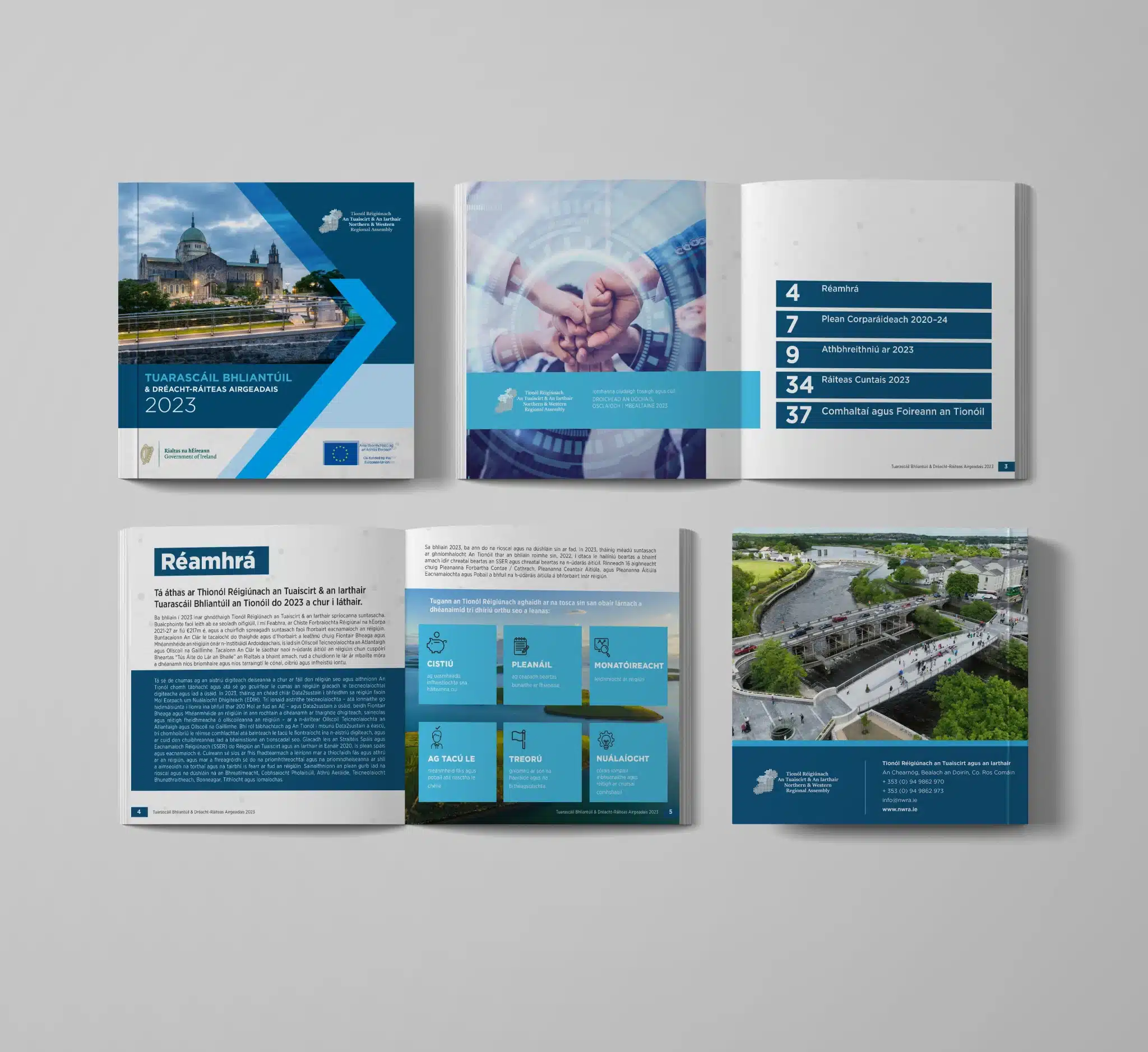 Designwest is proud to unveil our most recent accomplishment in annual report design: the 2023 Annual Report and Financial Statement for the Northern and Western Regional Assembly (NWRA). This project perfectly illustrates our capabilities in handling complex, bilingual financial reports that not only meet but exceed the expectations of our esteemed clients across Ireland, including Dublin and Mayo.