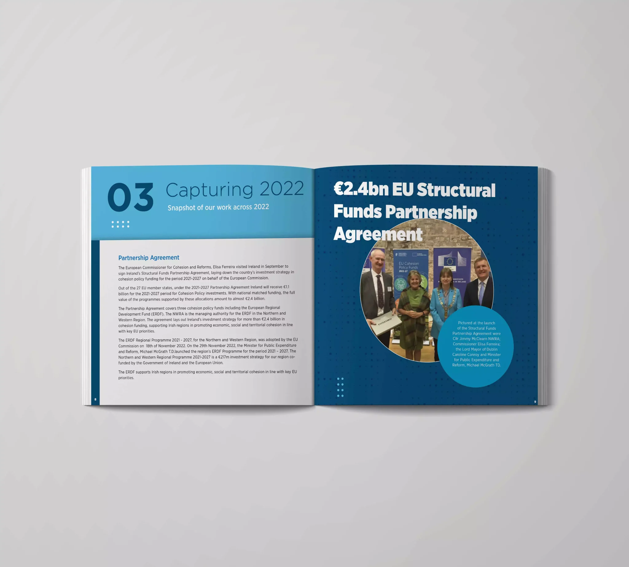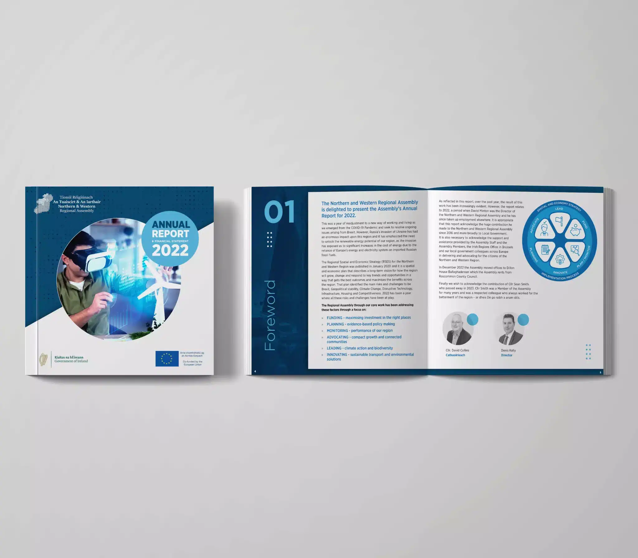 At DesignWest, we are dedicated to delivering exceptional graphic design services across Dublin and Ireland. Our recent collaboration with the Northern and Western Regional Assembly (NWRA) to create their Annual Report and Financial Statements for 2022 highlights our commitment to excellence. This comprehensive document, designed to present detailed financial data and yearly progress in a clear and engaging manner, showcases our ability to manage complex graphic design projects with creativity and precision. The inclusion of custom-designed infographics enhances the report, making complex information visually appealing and easily understandable.