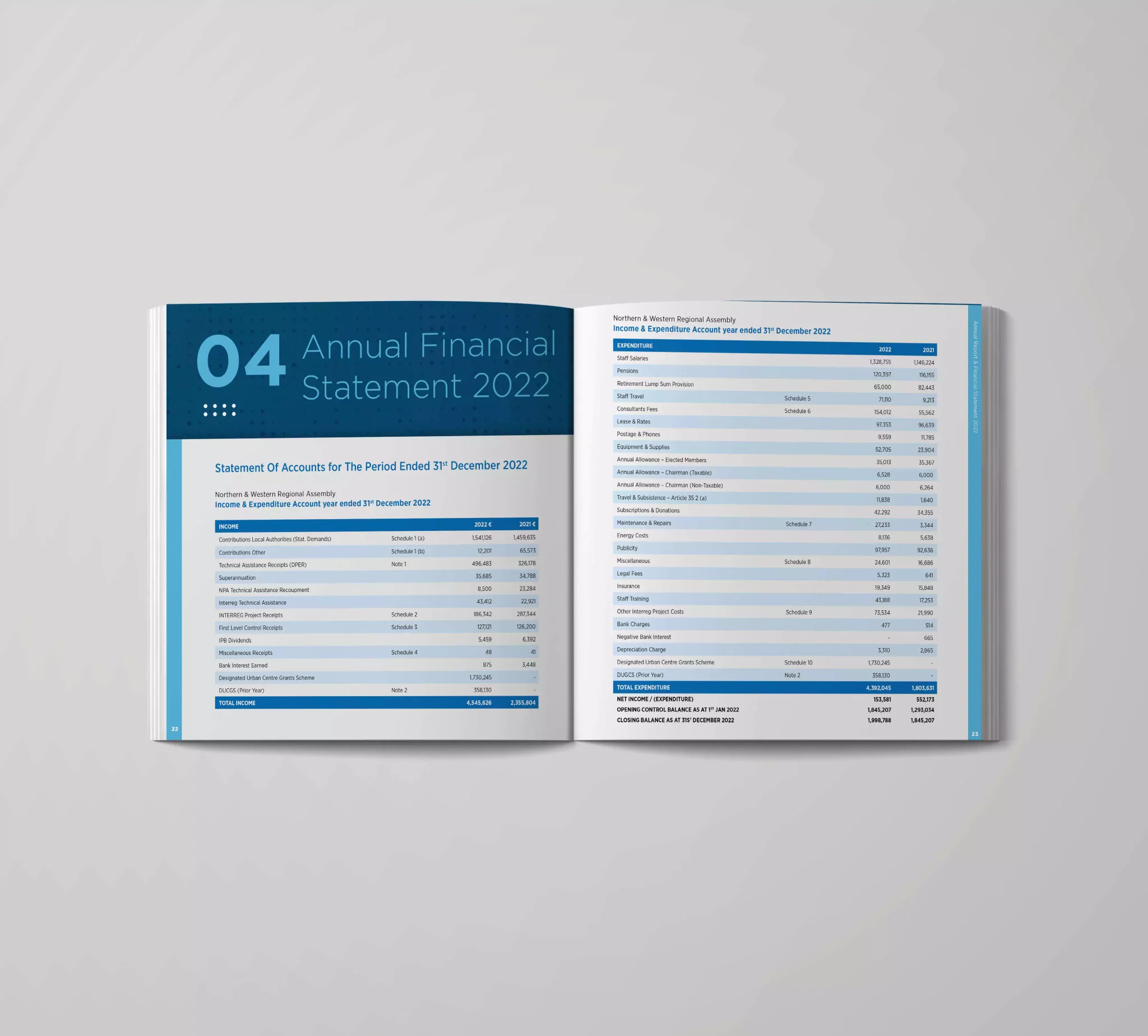 The NWRA Annual Report and Financial Statements 2022 is a crucial document for the assembly, capturing their strategic initiatives, financial performance, and key achievements over the past year. Our task was to transform extensive data and textual content into a visually appealing and easily navigable format. This report not only reflects the NWRA’s commitment to transparency and accountability but also their ongoing efforts to promote regional development and economic growth.