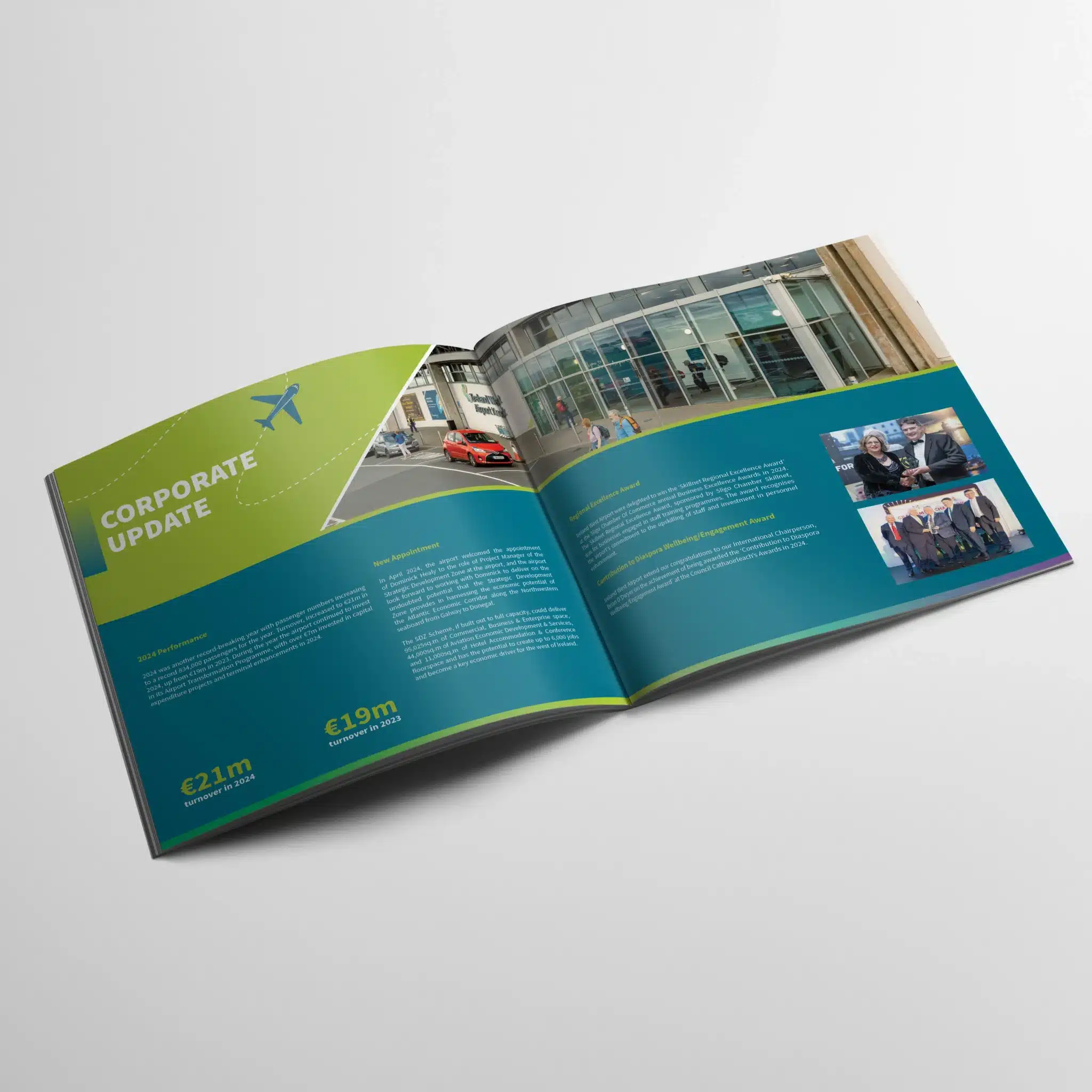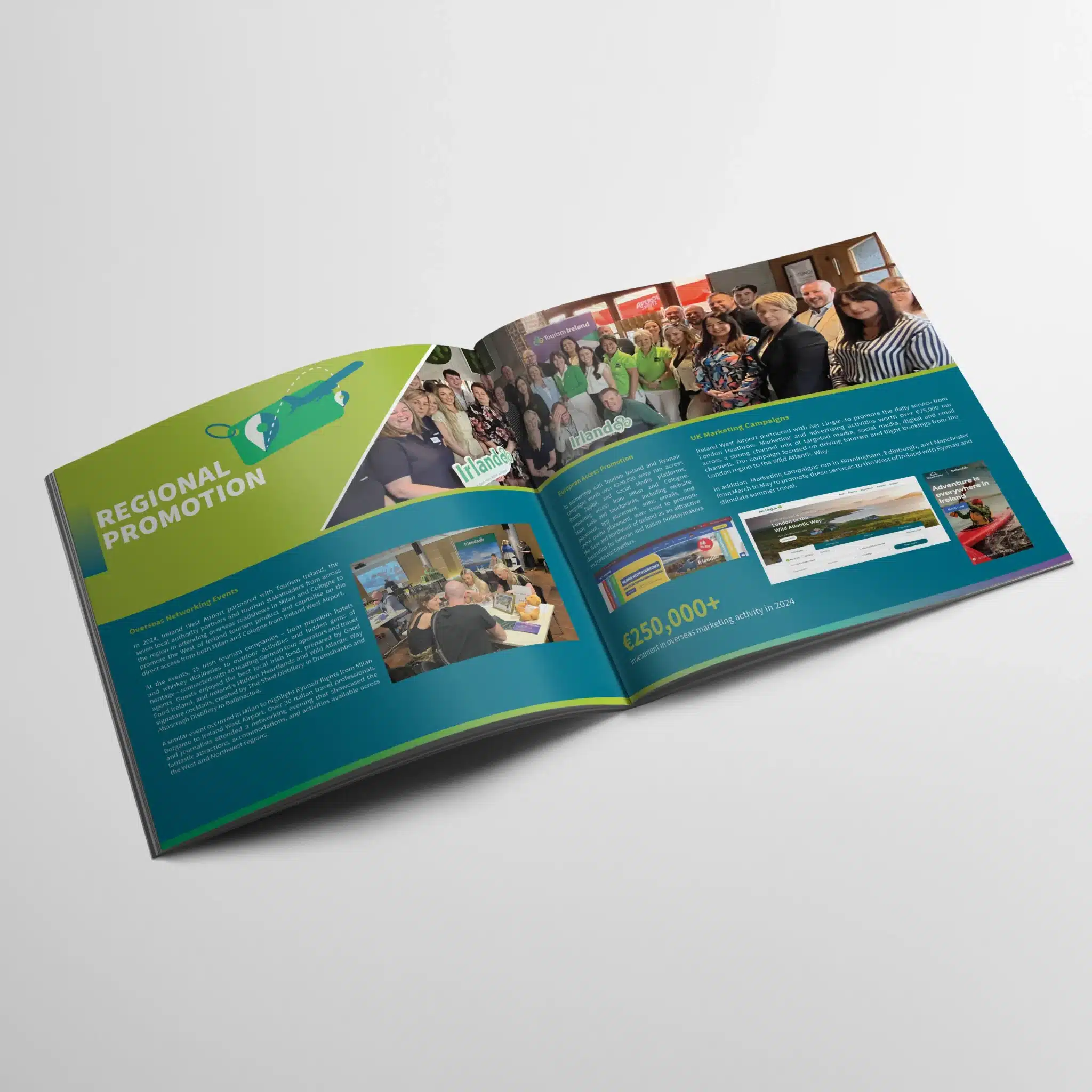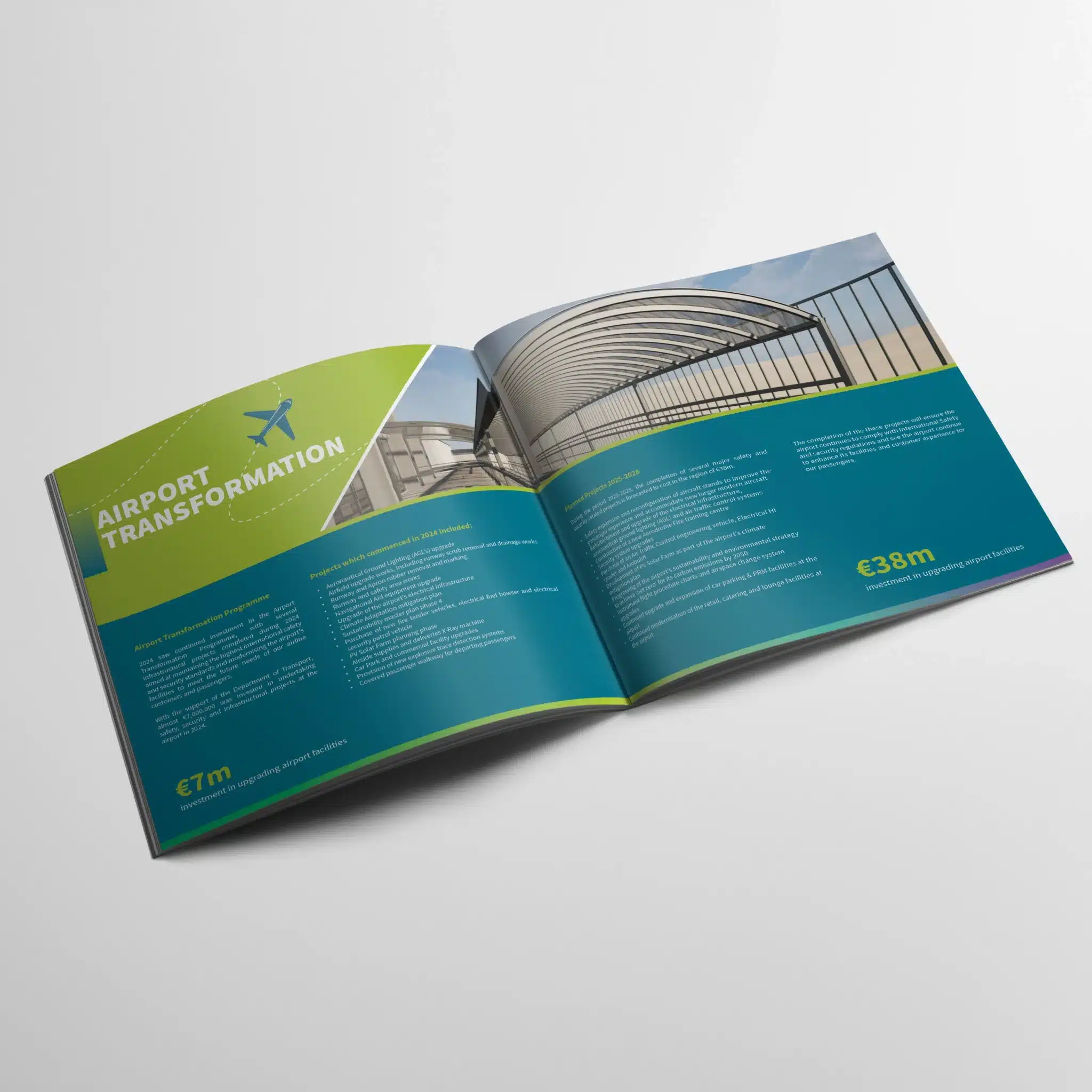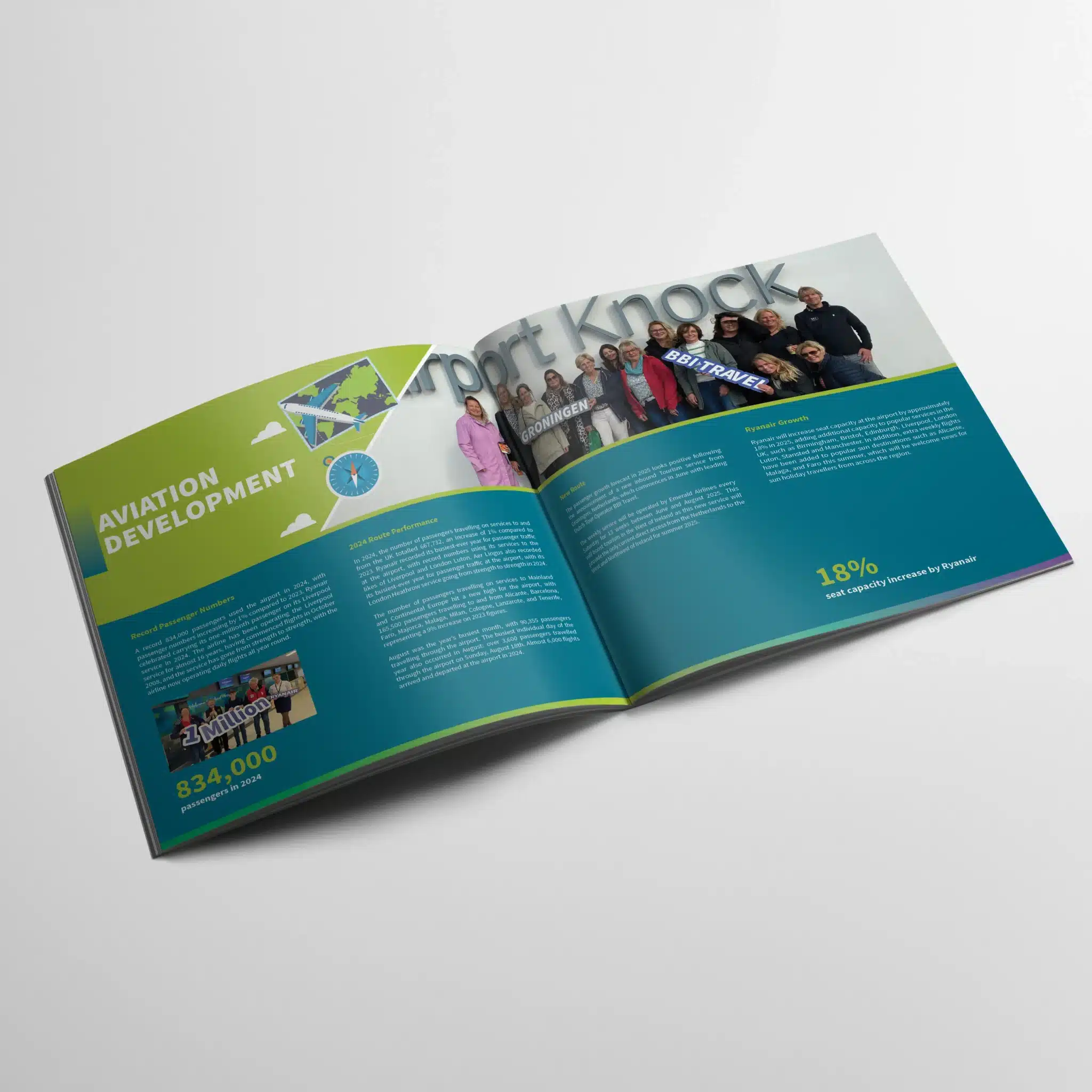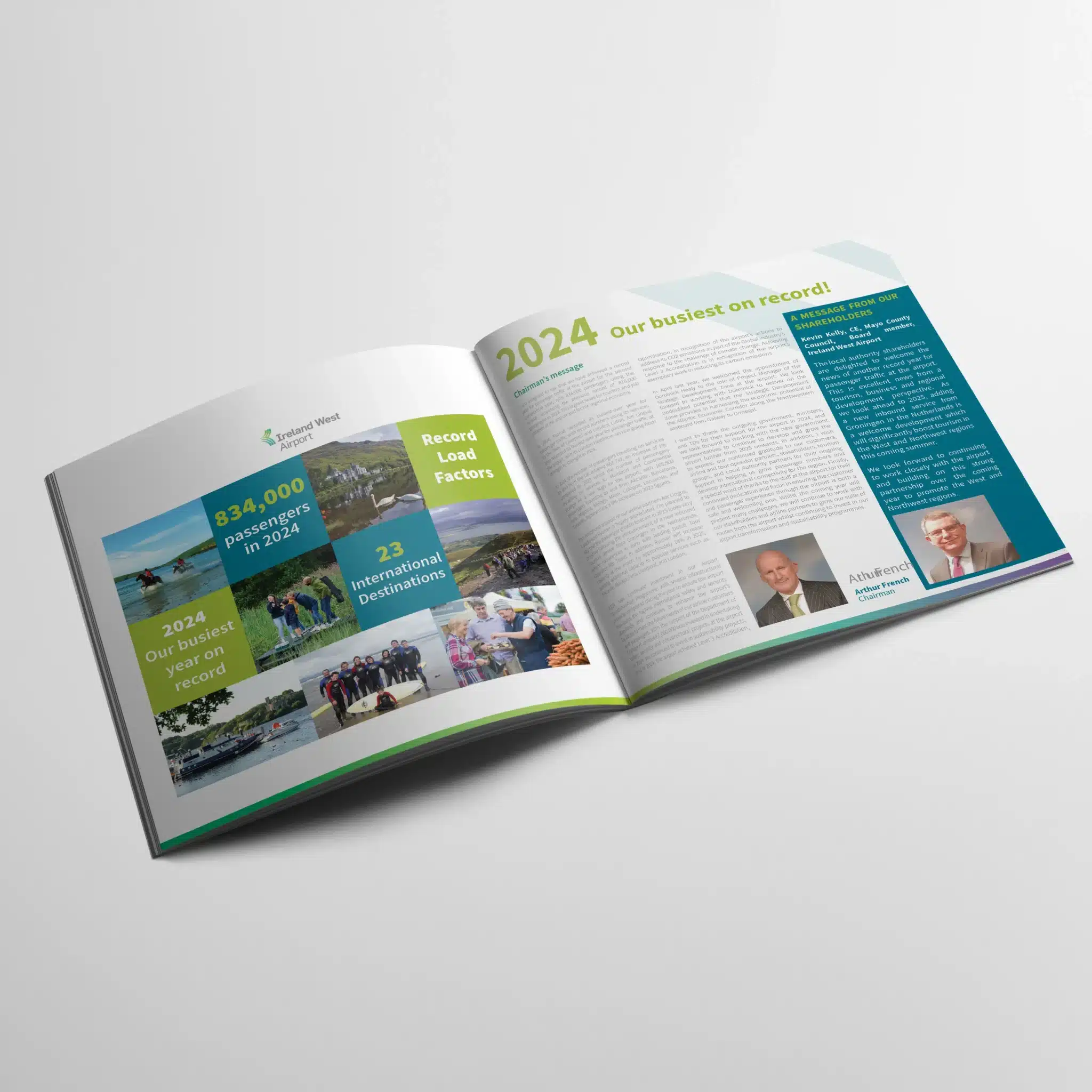 The Ireland West Airport 2024 Annual Review is a perfect example of how a professional brochure design can capture the spirit of an organisation while delivering essential information clearly and stylishly.