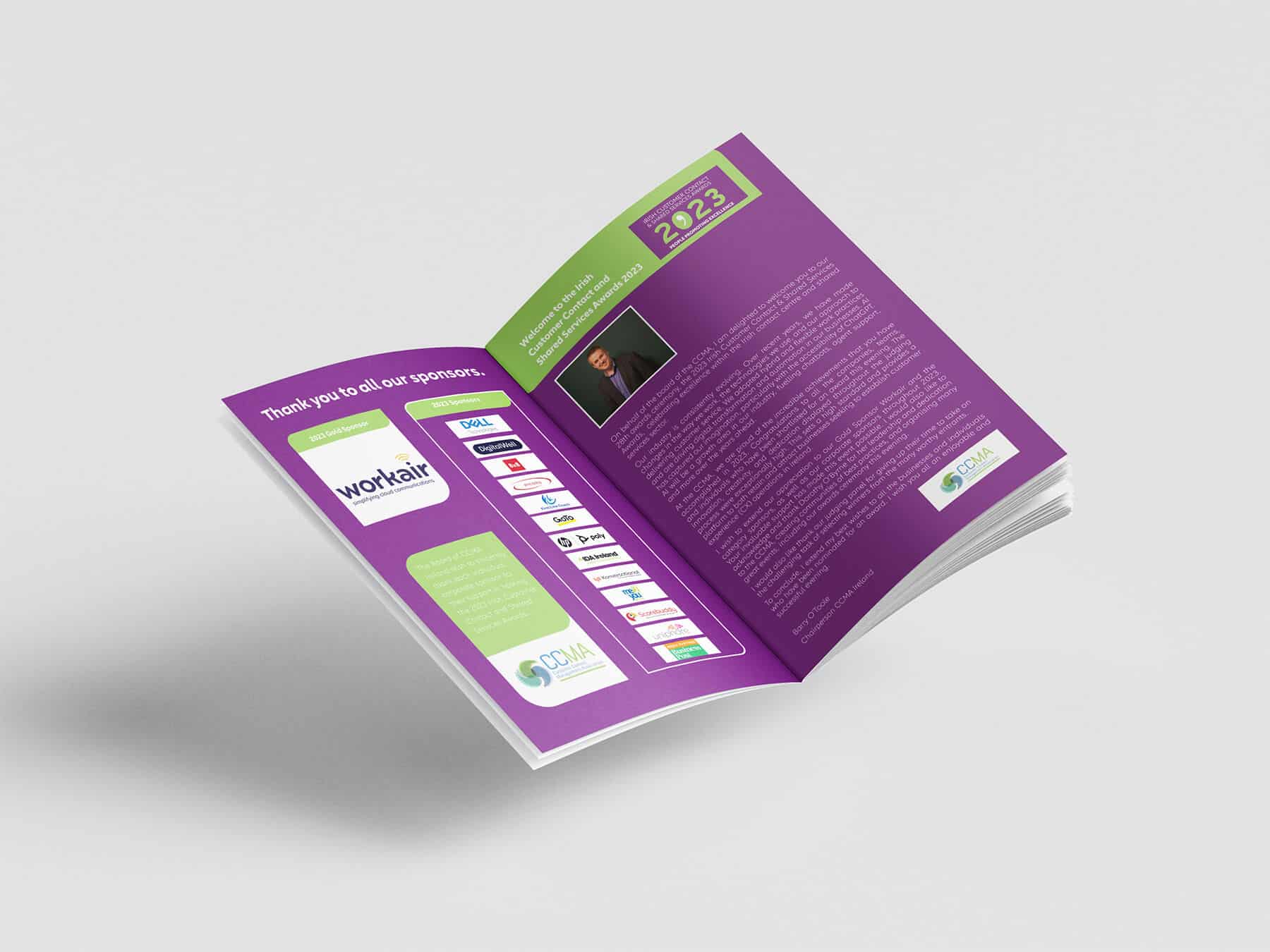 Showcasing Excellence: Designwest’s Brochure Design for CCMA Irish Customer Contact & Shared Services Awards 2023