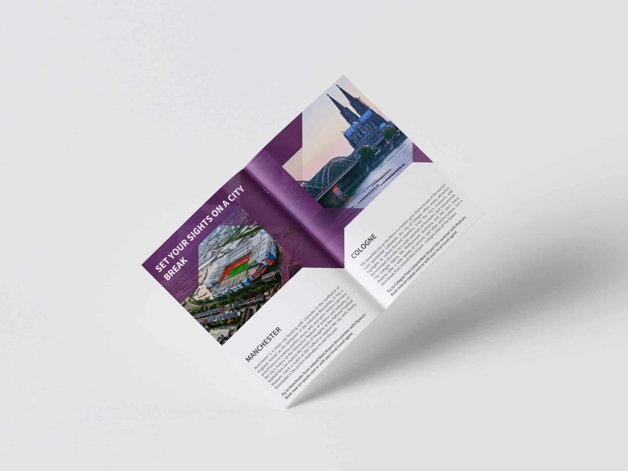 Our team of adept graphic designers in Ireland, renowned for their creative flair and precision, has once again demonstrated their exceptional talent in this recent endeavor. The brochure we designed for Ireland West Airport Knock is not just a mere pamphlet; it’s a vivid narrative that unfolds the airport’s summer offerings, spotlighting an array of enticing flight destinations and exclusive deals that beckon travelers to embark on their next adventure.