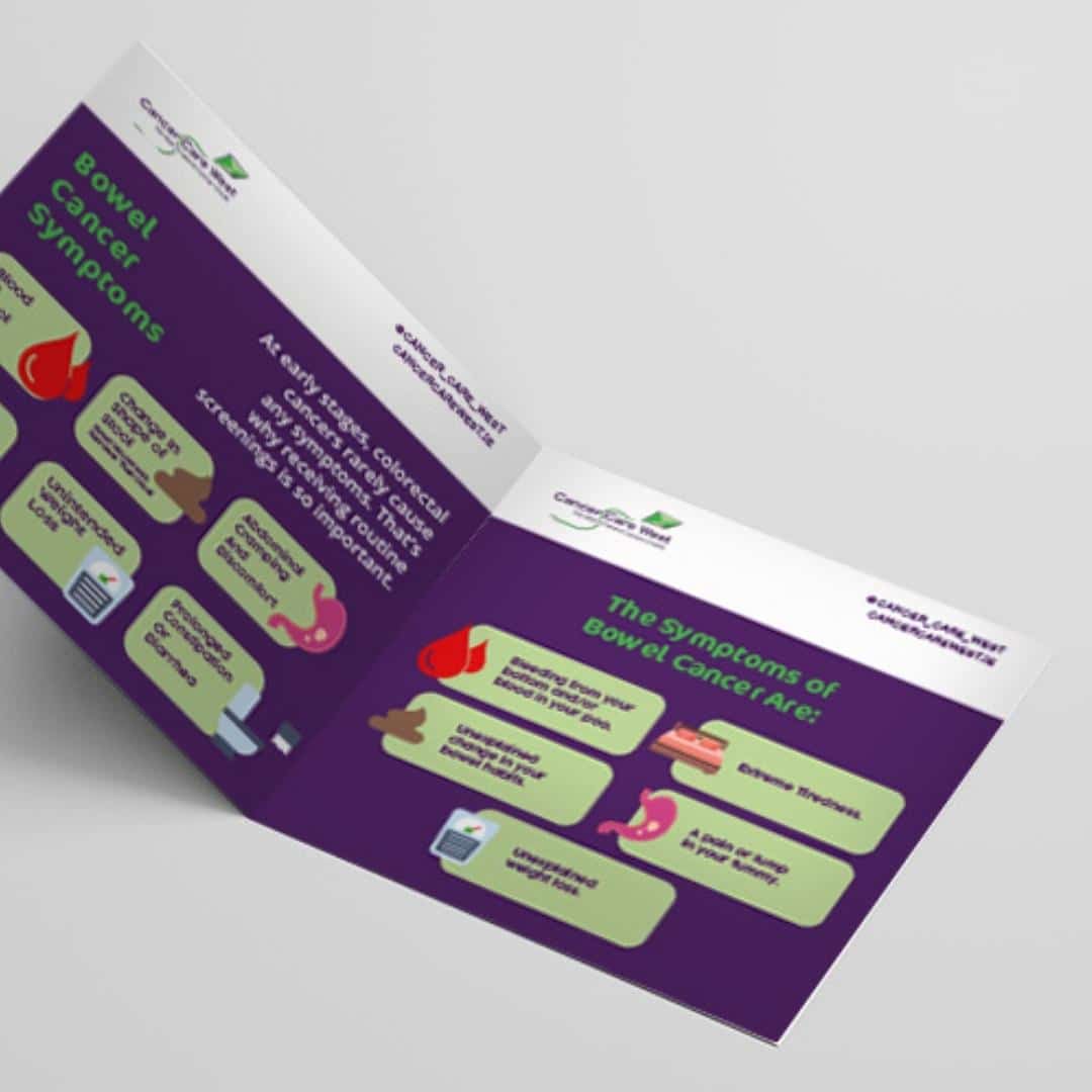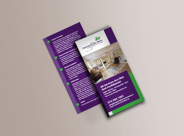 We recently designed some information brochures, leaflets and posters for Cancer Care West. Their mission is that no one should have to go through cancer alone. They provide professional community-based practical and emotional support services, to anyone affected by cancer. It was a pleasure working with Cancer Care West on this project!