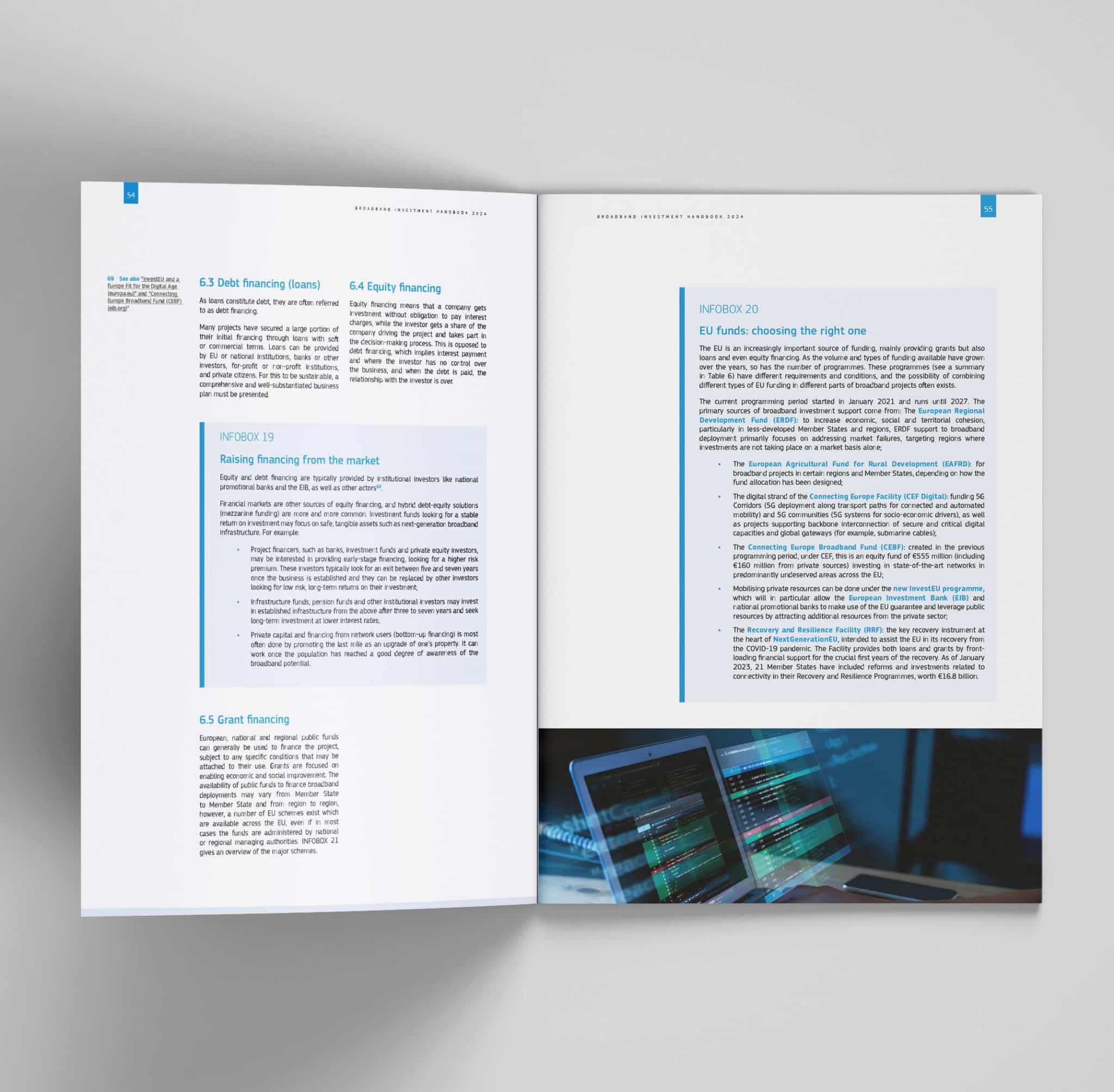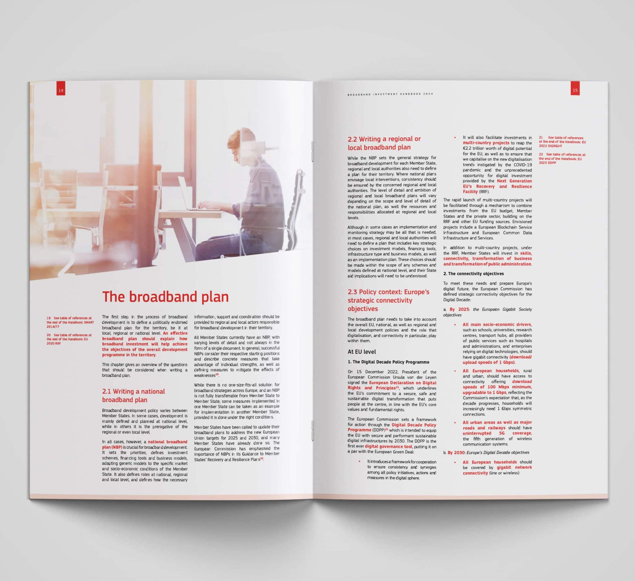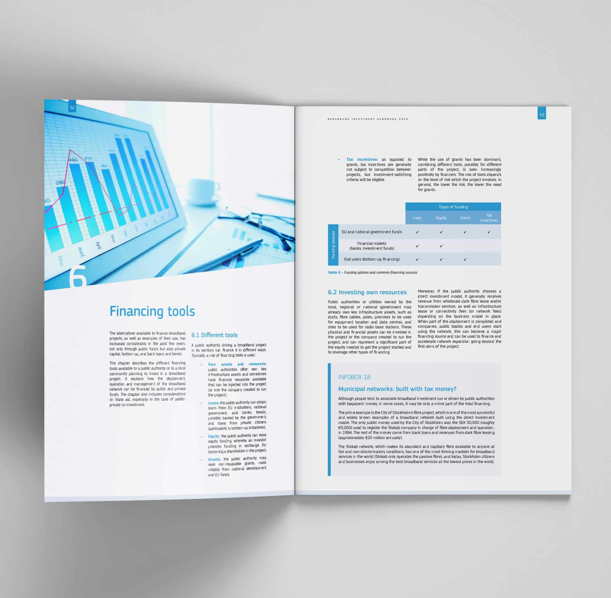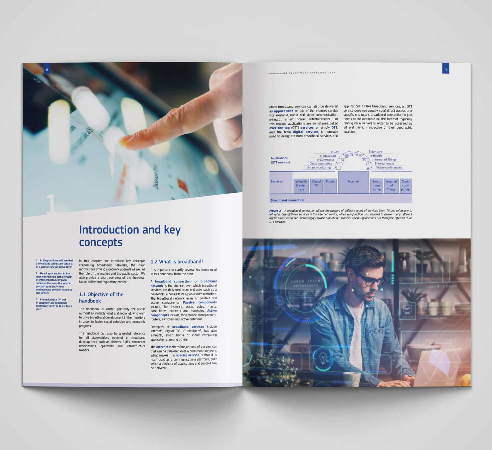 Our approach to the design of this handbook was meticulous and collaborative. We understood that the material was not just informative but instrumental in shaping Europe’s broadband infrastructure. Therefore, our design choices were made with the utmost attention to detail, ensuring that each element of the brochure served a purpose, from aiding comprehension to facilitating decision-making.