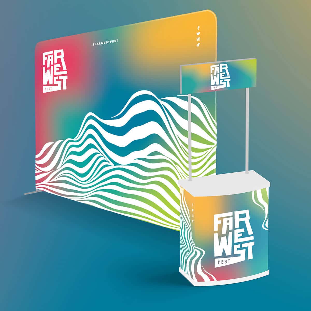 Stage Design, Wristband Design, Podium Design, and Wall Design: Our talented graphic design team at designwest went above and beyond to create captivating stage designs, wristband designs, podium designs, and wall designs for Far West Festival. These elements were crucial in transforming the festival into an immersive visual experience.