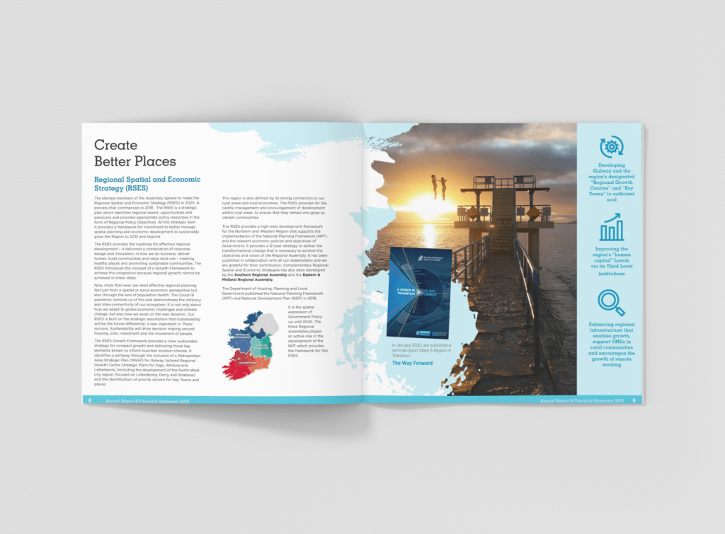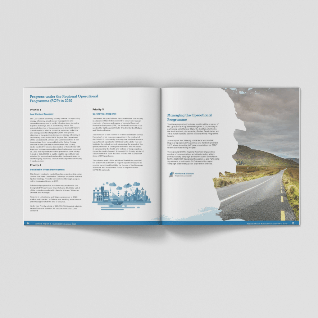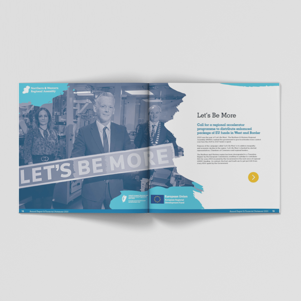 We recently designed some information booklets for the Northern & Western Regional Assembly’s Annual Report 2020. The Northern and Western Regional Assembly (NWRA) is one of three Regional Assemblies in the Republic of Ireland. They work with key stakeholders at EU, national, regional and local level to accelerate and optimise effective regional development. We really enjoyed working with Northern & Western Regional Assembly on this project!