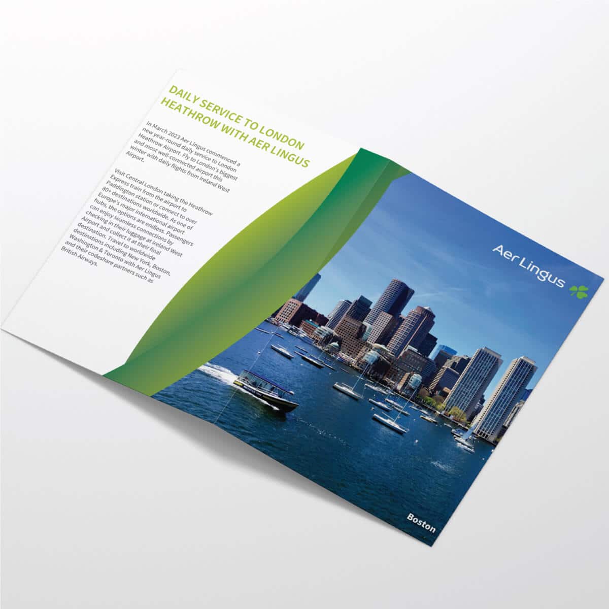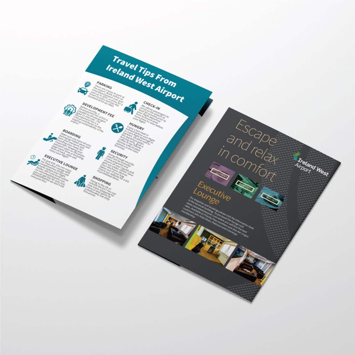 Through Dublin’s lively arteries and amidst Galway’s tranquil vistas, Designwest’s signature – a symbol of unrivaled quality and creativity in brochure design in Ireland – is prominently featured. Our extensive portfolio extends across various industries and regions, each design a testament to our commitment to translating unique brand stories into compelling visual narratives, much like we’ve done for Ireland West Airport Knock.