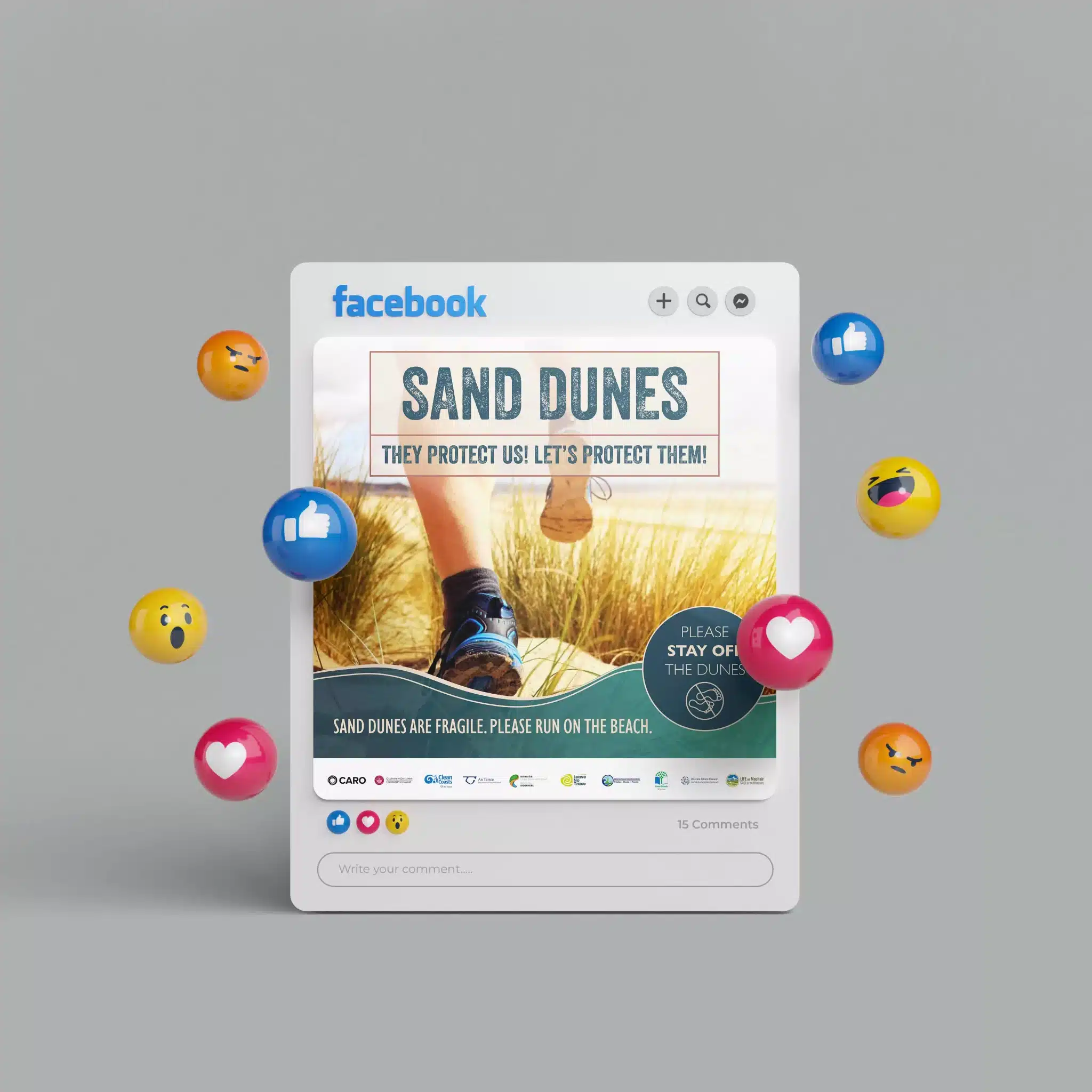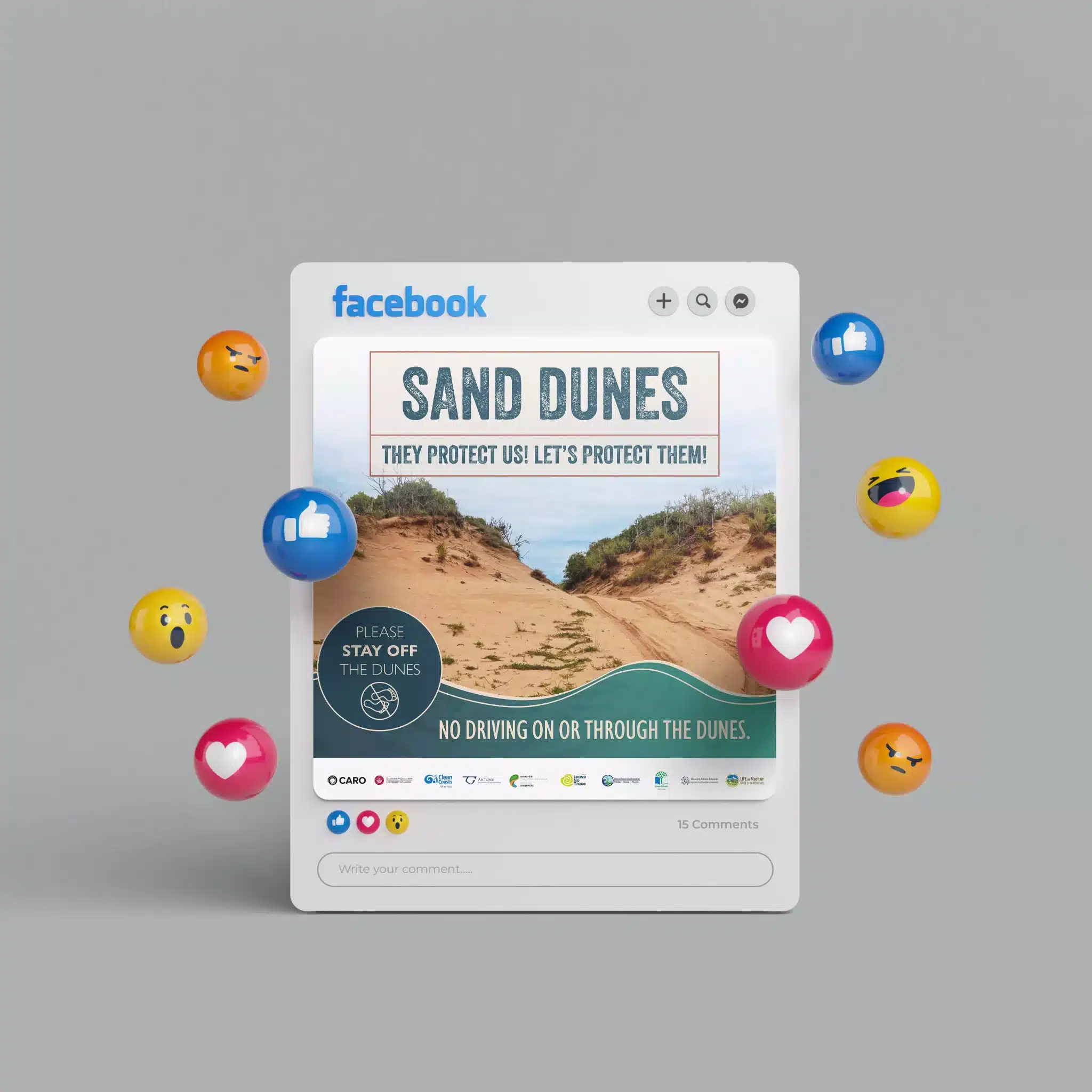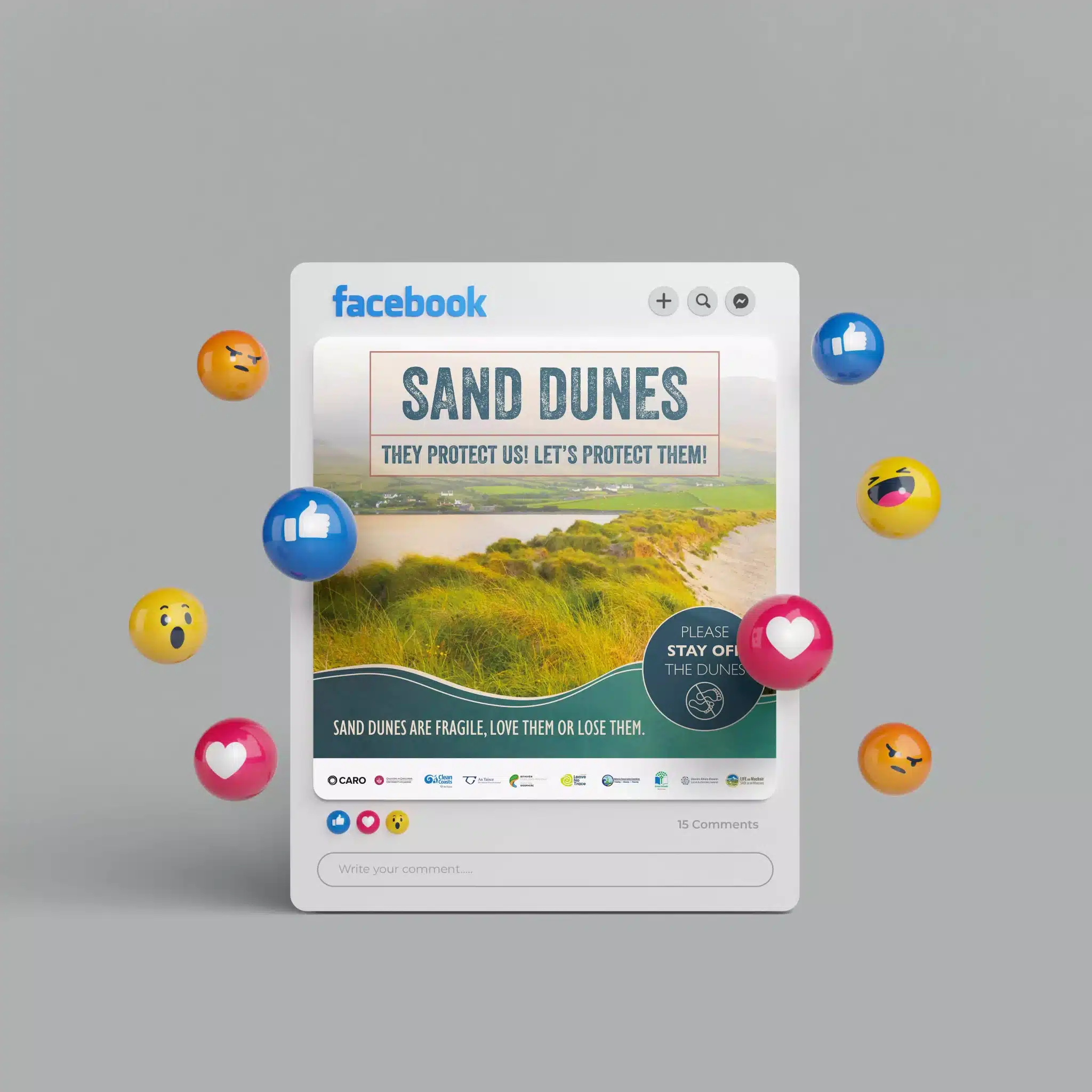 The visuals needed to be versatile, engaging, and informative. Our designers created stunning imagery that showcases the beauty of the Irish coastline and sand dune areas, as well as action shots illustrating the types of scenarios that often lead to dune damage. These visuals were designed to captivate the audience and convey the importance of sand dune conservation.