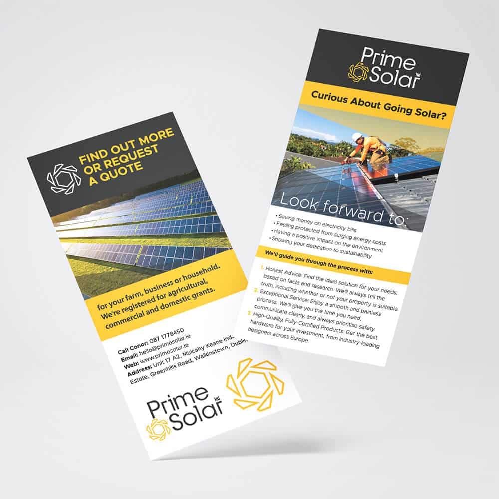 At DesignWest, we pride ourselves on creating custom designs tailored to our clients’ specific needs. Recently, we had the opportunity to work with Prime Solar, a Dublin and Monaghan based company committed to providing clean energy solutions to businesses across Ireland. Our team of expert designers and developers were tasked with creating a new brand identity for Prime Solar, along with a suite of promotional materials, a website, and vehicle livery. Here’s how we crafted the perfect brand identity for Prime Solar.