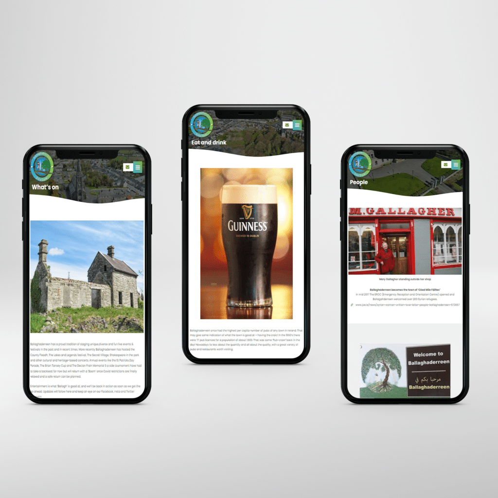 Here is a website design that the team at Designwest created for the town of Ballaghaderreen, in the county of Roscommon.